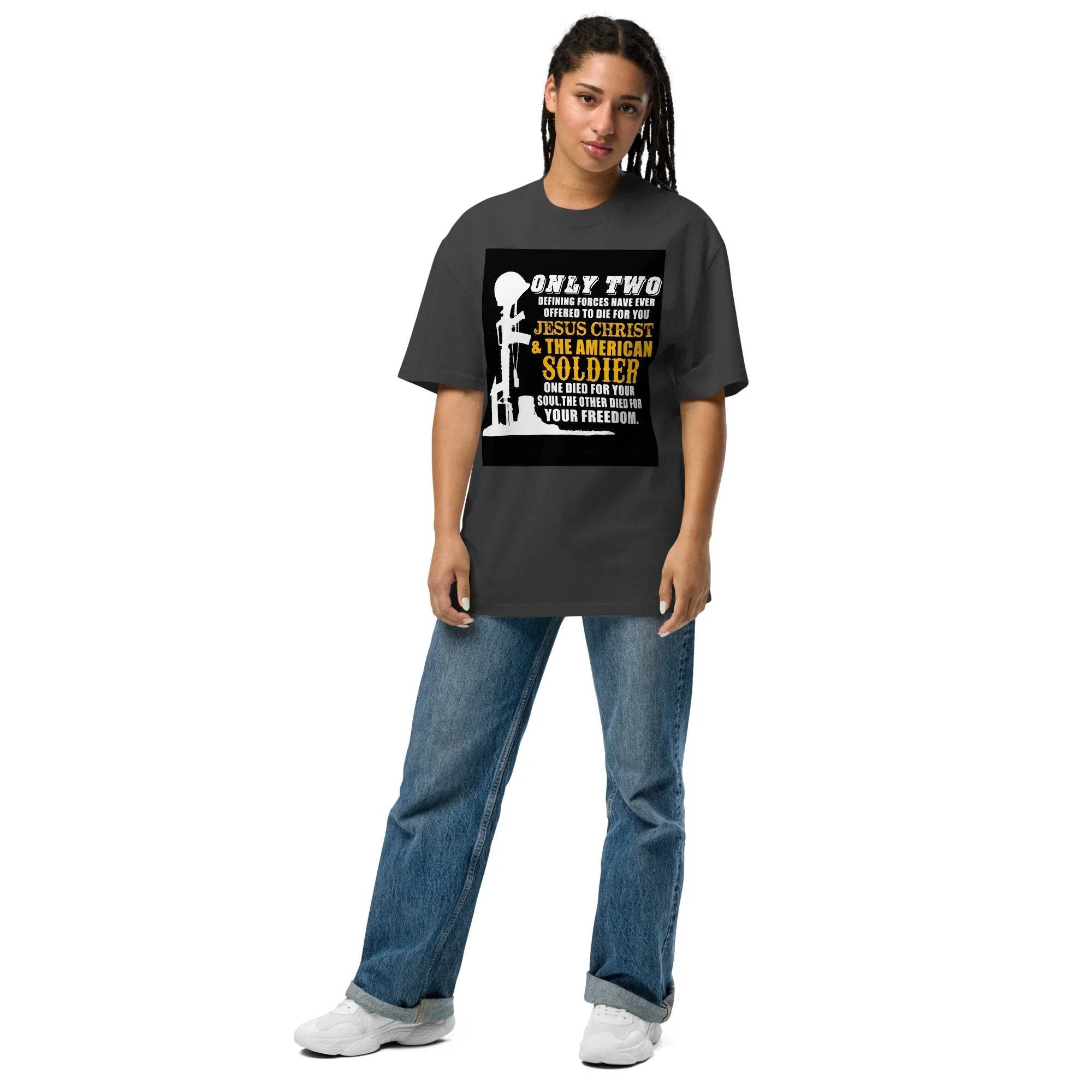 The American Soldier oversized faded t-shirt offers a relaxed, boxy fit perfect for layering and expressing your style. Made from soft, pre-shrunk 100% carded cotton, it features dropped shoulders and wide neck ribbing for added comfort. Made to order to reduce waste, this shirt blends modern trends with a vintage feel.